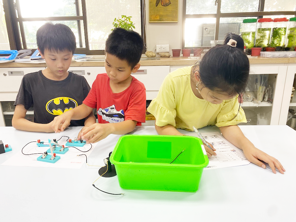 因此課程一開始,在LIS講師昱禎的引導下,讓孩子們化身「維修師」,必須想辦法為鄰居修好物品,藉此創造一個任務情境,引起孩子的學習動機,接著從日常生活中熟悉的家電設備──吹風機、微波爐、寵物箱等作為任務挑戰,讓學生在觀察後,可以聯想到能運用課本上所學的串聯與並聯,提出能修好家電開關或合適功能的假設,最後親自做實驗進行驗證,透過一連串的引導教學,讓孩子理解其中電路的運作邏輯。